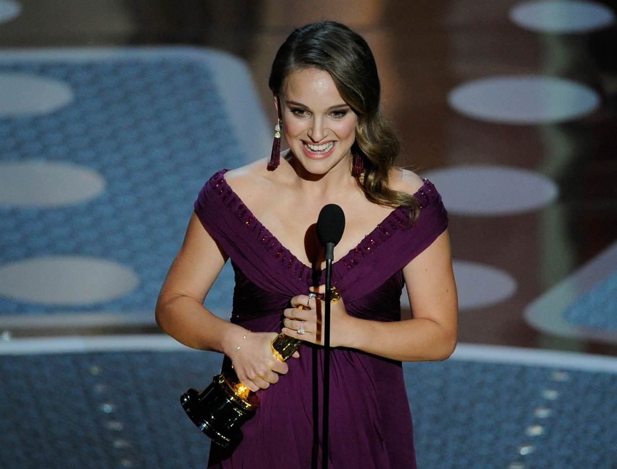 Niềm vui của “Nữ hoàng Chiến tranh giữa các vì sao”, Natalie Portman khi giành giải Oscar cho Nữ diễn viên chính xuất sắc với vai diễn trong bộ phim: “Black Swan”. (