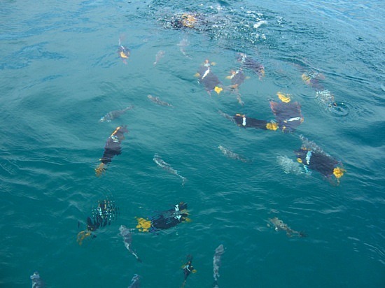 Hàng năm, tại hang đá ngầm Eden Rock của quần đảo Cayman, thường xuyên có hàng ngàn đàn cá bơi về đây để tìm kiếm thức ăn và sinh sản. Bức ảnh được chụp vào buổi chiều khi mặt trời đã xuống. (