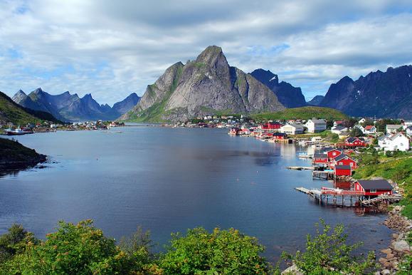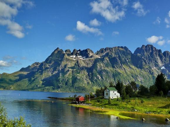 Lofoten là nơi có núi tuyết nằm trên biển đẹp tuyệt vời, nhất là đoạn từ Hamnoy đến Reine và cuối đảo).