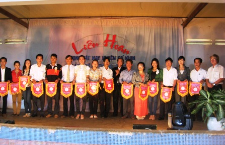 | Ban tổ chức tặng cờ lưu niệm các đoàn tham gia Liên hoan |
