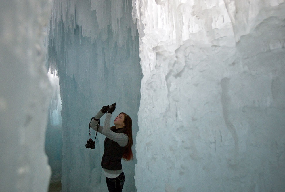 Cô Arlissa Va Hoogen, đến từ Texas, tham quan lâu đài băng ở Silverthorne, Colorado (Mỹ). Lâu đài băng này có những công trình nhân tạo làm từ băng như các lối đi, đường hầm, hay những tảng băng lớn cao đến 9-12m. (Ảnh: Getty)
