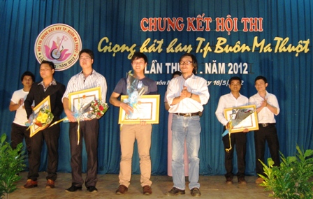 | Ban tổ chức tặng hoa chúc mừng đội đoạt giải Nhất |