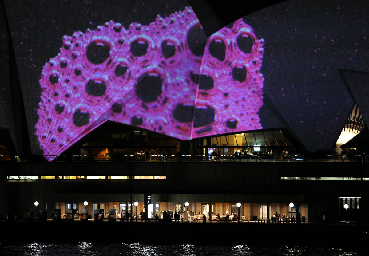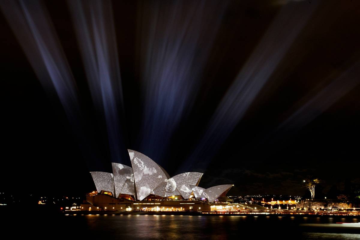 Trong suốt thời gian diễn ra Festival, những tác phẩm nghệ thuật bằng ánh sáng trên Nhà hát Opera Sydney sẽ liên tục thay đổi.