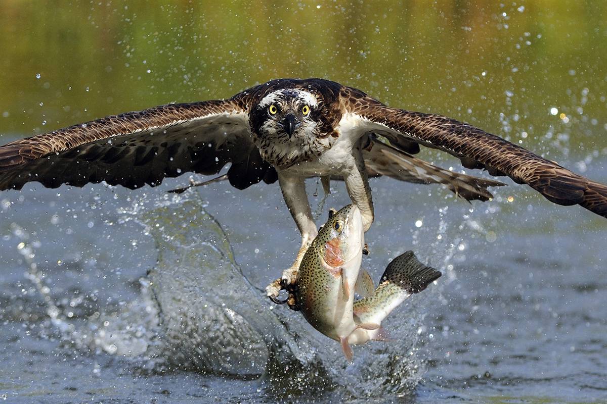 Trong bức ảnh bên trái, chú cá như một cung thủ phun nước để đo khoảng cách từ mặt nước tới con mồi và lao vọt lên bắt mồi.