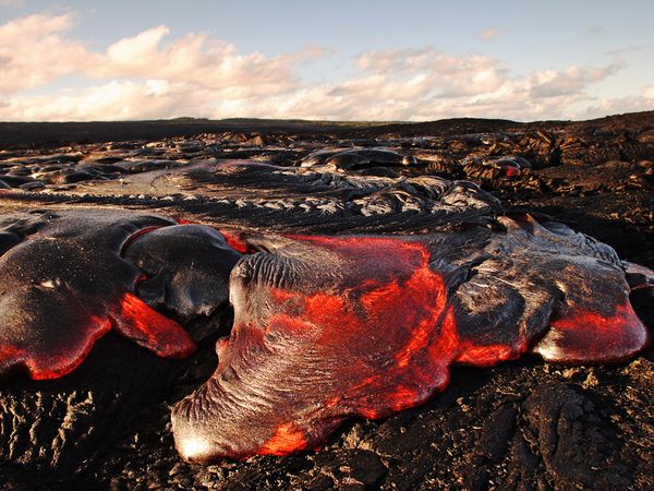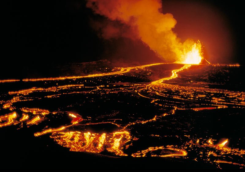 Hình ảnh về dòng dung nham của núi lửa Kilauea (Hawaii) quốc gia. Những dòng dung nham này có tốc độ chảy tương đối chậm và nhiệt độ lên tới 1.200°C