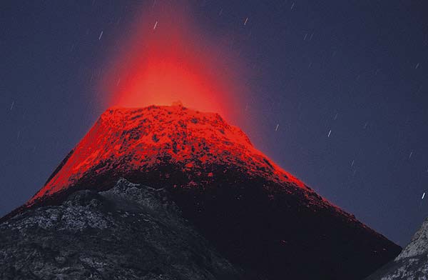 Một dòng dung nham neon-cam của núi lửa Ol Doinyo Lengai, ở Tanzania. O l Doinyo Lengai, trong ngôn ngữ Maasai có nghĩa "núi của chúa", đây là ngọn núi lửa duy nhất trên thế giới phun trào nham thạch natrocarbonatite, một loại nham thạch cực lỏng và hầu như không có silicon.