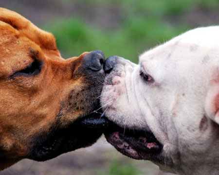 | Nụ hôn nồng cháy của hai chú chó Ngao trưởng thành |