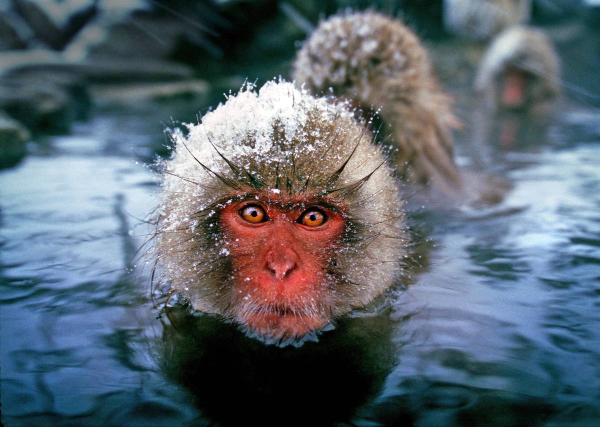 Sự “hưởng thụ” của những chú khỉ tuyết hoang dã Nhật Bản ở vùng núi Nagano (Nhật Bản). (