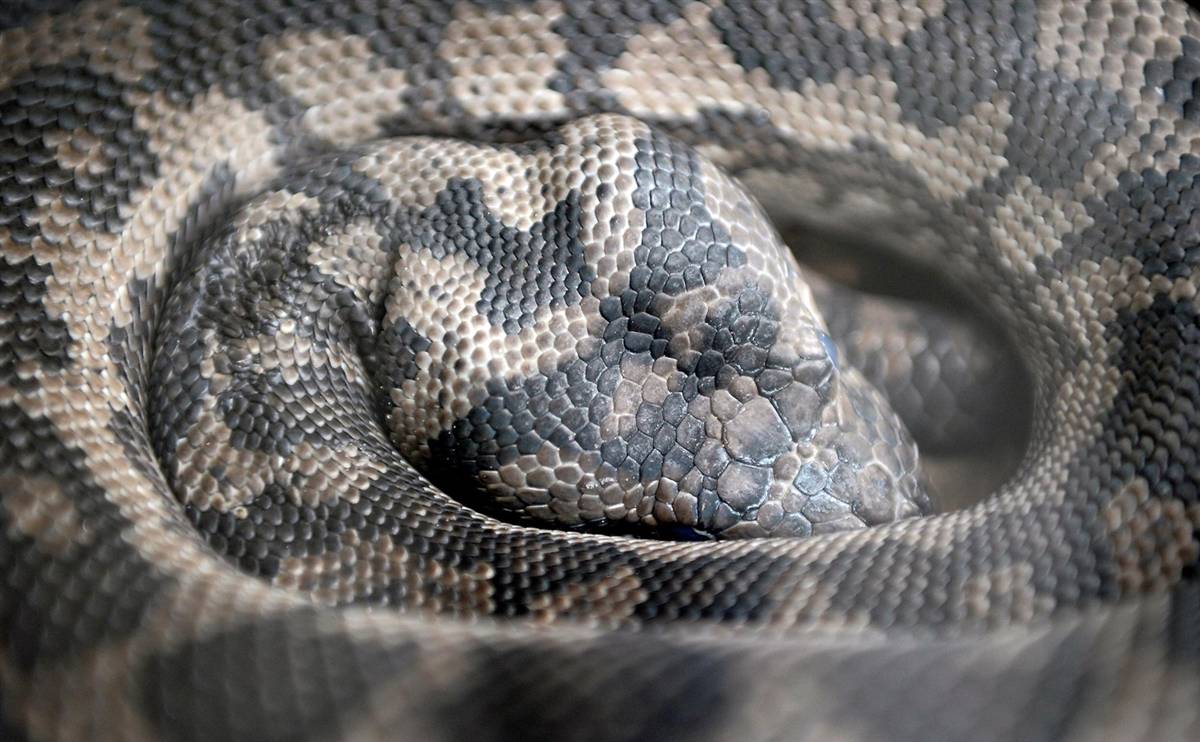 Giờ nghỉ trưa của một con rắn Python Carpet tại Khu bảo tồn động vật Luisenpark, Mannheim (Đức). (