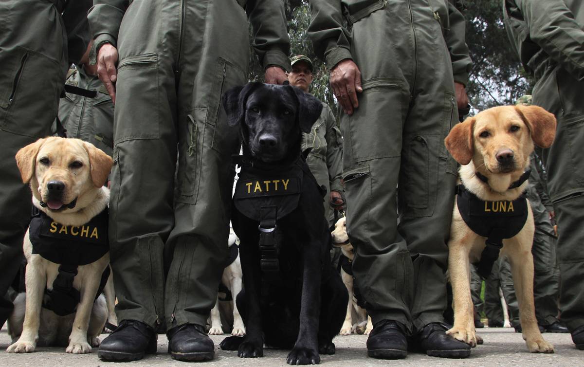 Những chú chó nghiệp vụ trong một buổi thuyết trình trước huấn luyện ở trường huấn luyện chó nghiệp vụ của Quân đội Colombia ở Bogota. (Ảnh: Reuters)