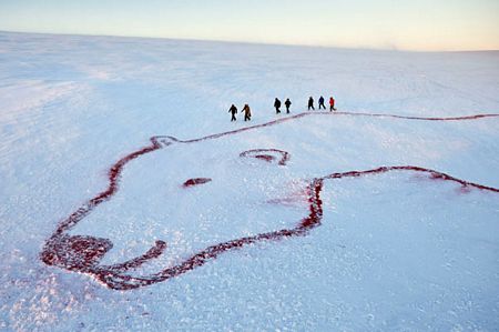 Bức vẽ khổng lồ một chú gấu trắng Bắc Cực tại dòng sông băng Langjokull (Iceland). (
