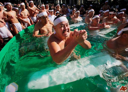 Đầu tháng 11 tại xứ sở hoa Anh đào sẽ diễn ra Lễ hội tắm nước lạnh vào mùa đông, đây là một nghi thức quan trọng trong đạo Shito, với ý nghĩa nước sạch có thể rửa sạch xác thịt và linh hồn, mở đầu cho một giai đoạn mới. Nghi thức này còn để thử thách sức chịu đựng và sức khoẻ của thiếu niên khi bước vào tuổi trưởng thành. Ảnh chụp tại Teppozu Inari Shinto Shrine ở Tokyo (Nhật Bản), ngày 10-11. (