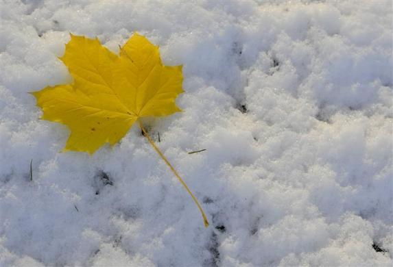 Chiếc lá mùa thu còn sót lại trên mặt đất tuyết phủ ở Helmsley, phía bắc nước Anh, ngày 26-11. (
