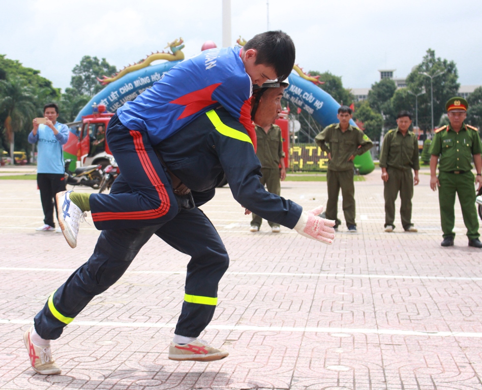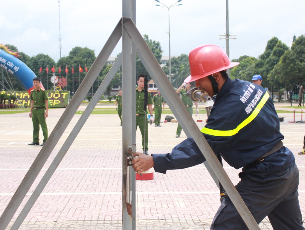 Vượt qua 3 rào điền kinh, chạy ziczac qua các cọc lửa, cứu người và tài sản trong hỏa hoạn… là những nội dung thi mà 300 vận động viên (VĐV) đến từ 60 đội tuyển (gồm 36 đội dân phòng và 24 đội phòng cháy chữa cháy cơ sở) phải vượt qua khi tham gia tại Hội thi thể thao nghiệp vụ chữa cháy và cứu nạn, cứu hộ vừa được UBND tỉnh tổ chức.
