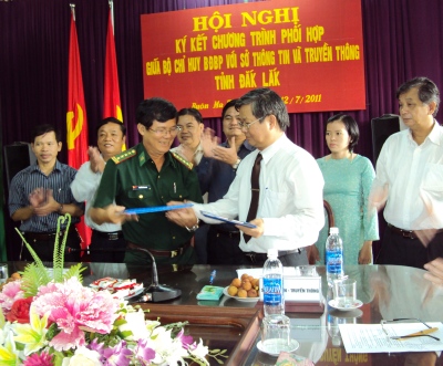 Ngày 12-7, Sở Thông tin và Truyền thông và Bộ Chỉ huy Bộ đội Biên phòng tỉnh đã tổ chức Lễ ký kết chương trình phối hợp trong công tác thông tin, truyền thông và thông tin đối ngoại tại khu vực biên giới, biển, đảo giai đoạn 2011-2020.
