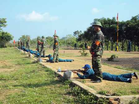 Các chiến sĩ tự vệ năm nhất được kiểm tra bằng súng Ga răng, tư thế nằm bắn mục tiêu 3 viên. Chiến sĩ năm hai kiểm tra bằng súng AR15, các tư thế nằm, quỳ, đứng, bắn 9 viên.