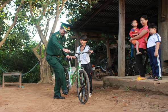 | Tại Đồn Biên phòng Ea H’leo, ngoài sơn ve xung quanh doanh trại, đơn vị còn quét dọn, vệ sinh khu vực Bia tưởng niệm các Anh hùng liệt sỹ |