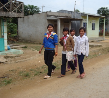 | Hỗ trợ kịp thời giúp học sinh dân tộc thiểu số yên tâm học tập. (Trong ảnh học sinh DTTS xã Krông Nô, huyện Lak đang tung tăng đến trường) |