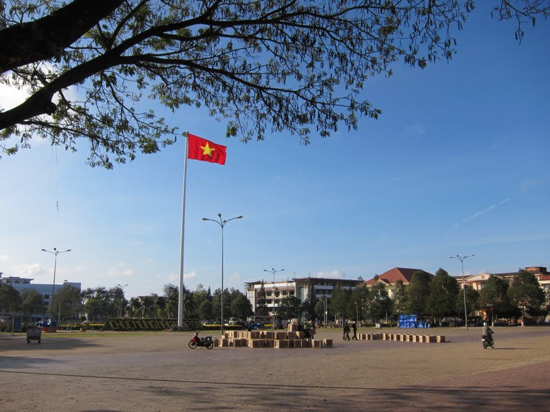 Một góc Quảng trường Trung tâm TP. Buôn Ma Thuột lúc công tác bắn pháo hoa được chuẩn bị rất khẩn trương