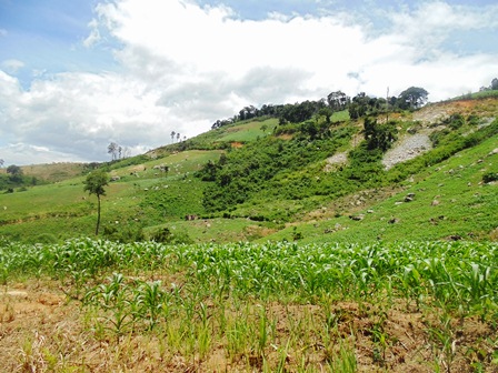 Dọc theo con đường lên đập Công trình thủy điện Ea Kha dài 7 km, cây rừng đã nhường chỗ cho những nương rẫy hoa màu bắt đầu hiện hình.
