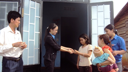 | Đại diện Ngân hành TMCP Ngoại thương chi nhánh Dak Lak bàn giao chìa khóa.. |