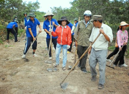 Lãnh đạo Vietcombank Dak Lak khởi công xây dựng nhà tình nghĩa. |