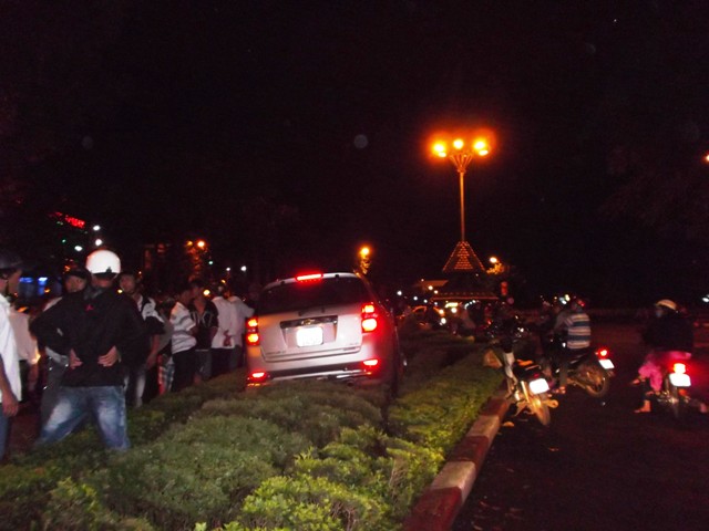| Kiểm tra xe biển số xanh trên Quốc lộ 14. |