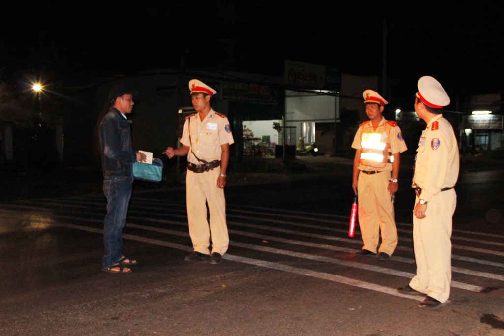 Trong tiết trời se lạnh một đêm đầu năm mới Giáp Ngọ 2014, chúng tôi được cùng tham gia một ca tuần tra, chốt chặn kiểm tra, xử lý xe vận tải hành khách tuyến Dak Lak - TP. Hồ Chí Minh và các tỉnh, thành phố phía Nam của lực lượng Cảnh sát giao thông (CSGT) trên Quốc lộ 14 (đoạn qua địa phận xã Hòa Phú, TP. Buôn Ma Thuột).