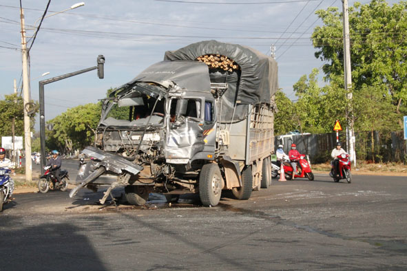 Thông tin ban đầu cho biết, vào thời điểm trên, xe máy BKS: 47P1 – 880.19 do anh Nguyễn Quốc Phương (SN 1983, khối 11, phường Ea Tam, TP. Buôn Ma Thuột) điều khiển trên đường vành đai hướng từ Nhà máy bia Sài Gòn - Bến xe phía Nam TP. Buôn Ma Thuột. Khi đến địa điểm trên thì tông mạnh vào đuôi ôtô tải BKS: 47P – 1613 do tài xế Trương Văn Cường (SN 1978, ngụ xã Ea Bar, huyện Buôn Đôn) điều khiển lưu thông cùng chiều. Hậu quả, anh Phương bị chết tại chỗ, xe máy bị hư hỏng hoàn toàn.
