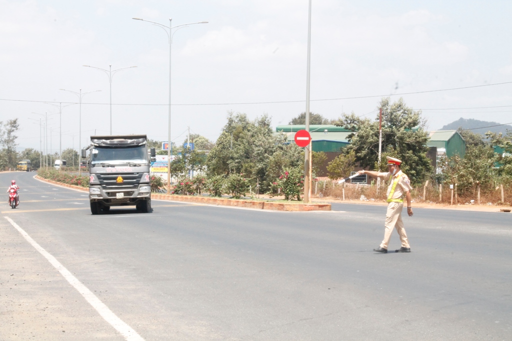 | Lực lượng CSGT tỉnh kiểm tra tài xế xe khách trên đường Hồ Chí Minh (đoạn qua địa bàn huyện Krông Búk). (Ảnh minh họa) |