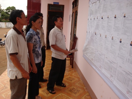 | Cử tri phường An Lạc ( thị xã Buôn Hồ) đang tìm hiểu các thông tin về các ứng cử viên HĐND để lựa chọn bầu |