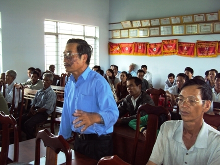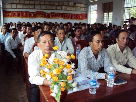| Cử tri xã Ea Blang (thị xã Buôn Hồ) lắng nghe chương trình hành động của các ứng cử viên. Ảnh: Nguyên Hoa |