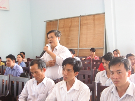 | Cử tri xã Ea Wer trình bày kiến nghị với ứng cử viên ĐBQH. Ảnh: Đ.L |