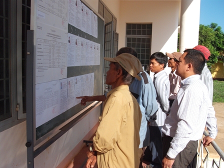 | Cử tri đang tìm hiểu thông tin của những người ứng cử ĐBQH khóa XIII (đơn vị bầu cử số 2). Ảnh: T.H |