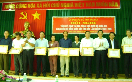 Nhân dịp này, UBND tỉnh đã tặng Bằng khen cho 147 tập thể và 383 cá nhân có thành tích xuất sắc trong công tác bầu cử đại biểu Quốc hội khóa XIII và đại biểu HĐND các cấp nhiệm kỳ 2011-2016.