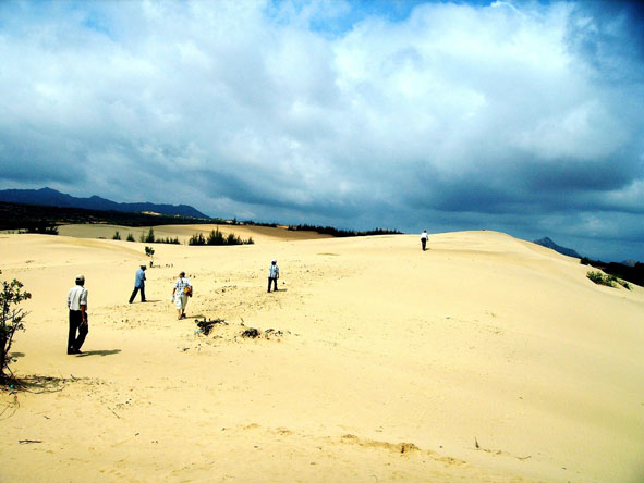 | Du khách đến chiêm ngưỡng vẻ đẹp của bãi rêu Nam Ô. |