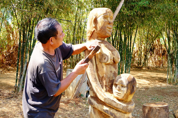 Nụ cười hồ hởi của đám phụ nữ dắt theo bầy trẻ lít nhít tụ tập vừa cho bọn trẻ ăn sáng, vừa nhấp ngụm nước giải khát, sẻ chia những tháng ngày bận rộn hay chuyện buồn vui của mỗi nhà. Nhóm các bà, các mẹ ngồi bên dàn chiêng móm mém nhai trầu, ấm áp mở lời chào đón những vị khách là lãnh đạo xã, thành phố ghé qua thăm hỏi, chúc mừng…