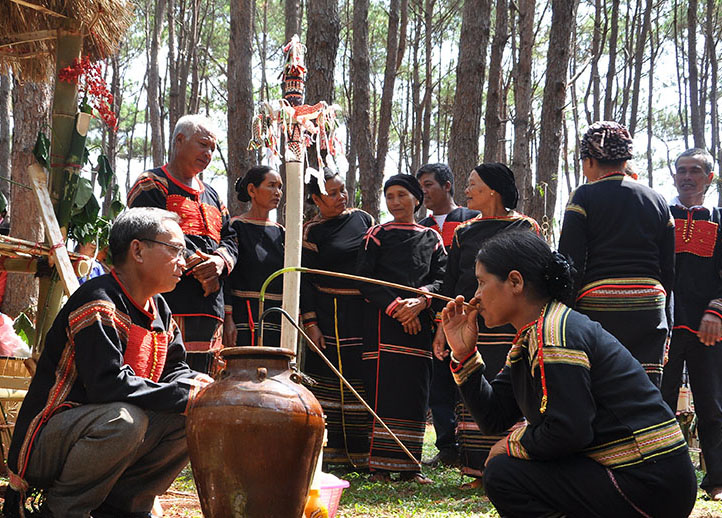 | Người dân Bru-Vân Kiều vẫn thường xuyên đan lát trong các buổi lễ quan trọng. |