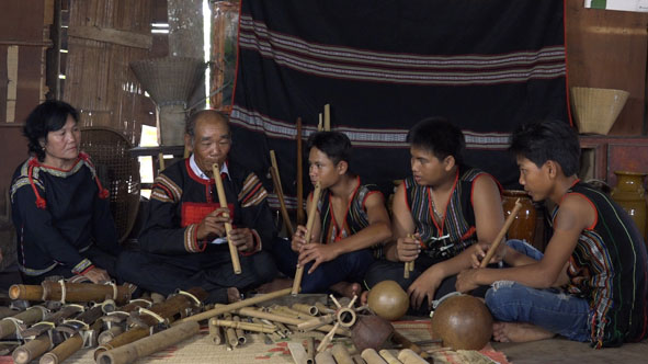 | Nhạc cụ tre trúc của người Êđê, M'nông thu hút sự quan tâm của khách tham quan. (Ảnh Bảo tàng tỉnh cung cấp) |