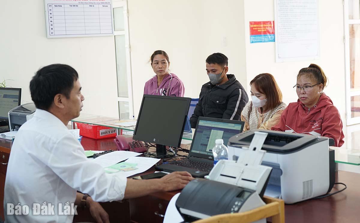 | Nhân viên Bảo hiểm xã hội cơ sở Tuy An Bắc đang tư vấn chính sách bảo hiểm xã hội tự nguyện cho người dân. |