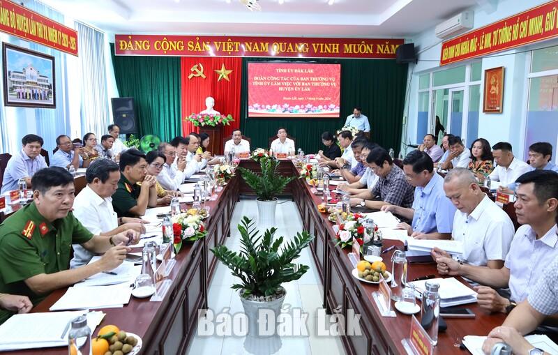 Phát biểu tại buổi làm việc, Ủy viên Trung ương Đảng, Bí thư Tỉnh ủy Nguyễn Đình Trung yêu cầu trong thời gian tới, Ban Thường vụ Huyện ủy Krông Bông cần tập trung rà soát, đánh giá việc thực hiện các chỉ tiêu, kế hoạch đã đề ra để có biện pháp chỉ đạo, đôn đốc kịp thời.