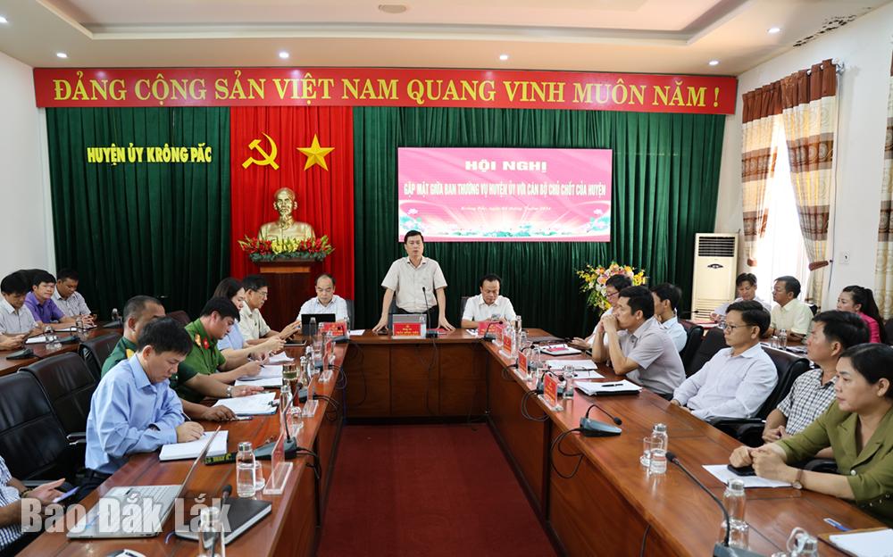 Sáng 5/7, Đảng bộ huyện Krông Bông tổ chức Hội nghị Ban Chấp hành mở rộng lần thứ 21 nhằm đánh giá kết quả thực hiện nhiệm vụ công tác 6 tháng đầu năm và triển khai phương hướng, nhiệm vụ 6 tháng cuối năm 2024.