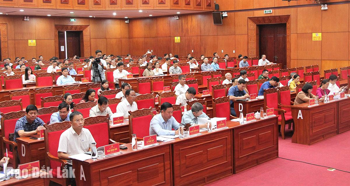Phát biểu kết luận hội nghị, Ủy viên Trung ương Đảng, Bí thư Tỉnh ủy Nguyễn Đình Trung nhấn mạnh, thời gian tới, các cấp, ngành, địa phương cần tập trung lãnh đạo, chỉ đạo và tổ chức thực hiện các chỉ tiêu, nhiệm vụ, giải pháp đề ra, phấn đấu hoàn thành tốt nhất các nhiệm vụ của năm 2024; hoàn thành các nhiệm vụ tổ chức thành công Lễ kỷ niệm 120 năm Ngày thành lập tỉnh; thực hiện tốt công tác chuẩn bị tổ chức Đại hội Đảng bộ tỉnh lần thứ XVIII; khẩn trương triển khai Quy hoạch vùng Tây Nguyên, Quy hoạch tỉnh Đắk Lắk thời kỳ 2021 - 2030, tầm nhìn đến năm 2050 theo kế hoạch; tăng cường quản lý hiệu quả công tác thu, chi ngân sách Nhà nước; đẩy nhanh tiến độ thi công Dự án đường bộ cao tốc Khánh Hòa - Buôn Ma Thuột bảo đảm kế hoạch.