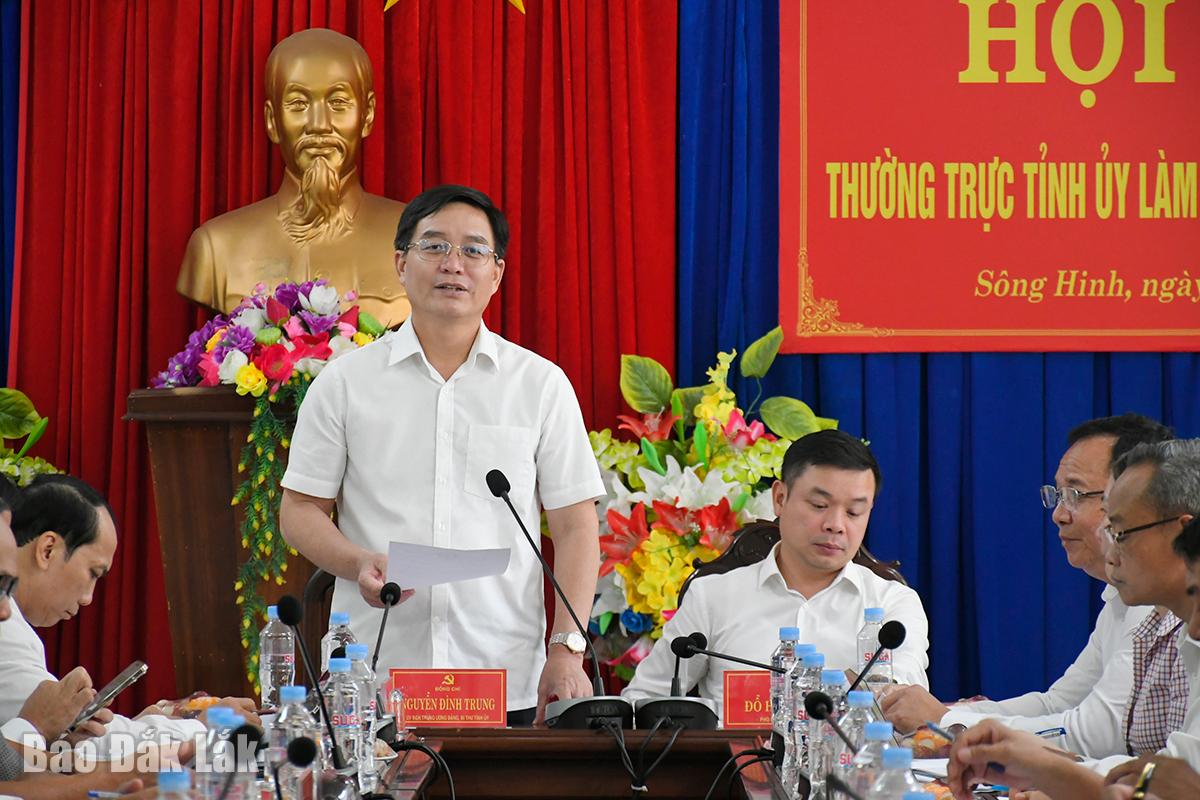 Đồng chí đề nghị Đảng bộ xã Sơn Hòa tiếp tục sắp xếp, kiện toàn, ổn định tổ chức bộ máy chính quyền địa phương hai cấp; tập trung rà soát, điều chỉnh, hoàn thiện quy hoạch, đảm bảo các quy hoạch được đồng bộ thống nhất và liên kết với các xã, khu vực lân cận; chú trọng phát triển các lĩnh vực công nghiệp - tiểu thủ công nghiệp, thương mại, dịch vụ theo hướng liên kết vùng; chăm lo tốt hơn nữa đời sống cho đồng bào dân tộc thiểu số; phấn đấu thực hiện thắng lợi các chỉ tiêu nghị quyết đề ra...