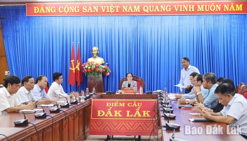 | Đại biểu theo dõi thông tin về kết quả thực hiện các chỉ tiêu, nhiệm vụ trong nhiệm kỳ 2020 - 2025 của xã Hòa Phú qua ấn phẩm của Báo và Phát thanh truyền hình Đắk Lắk. |