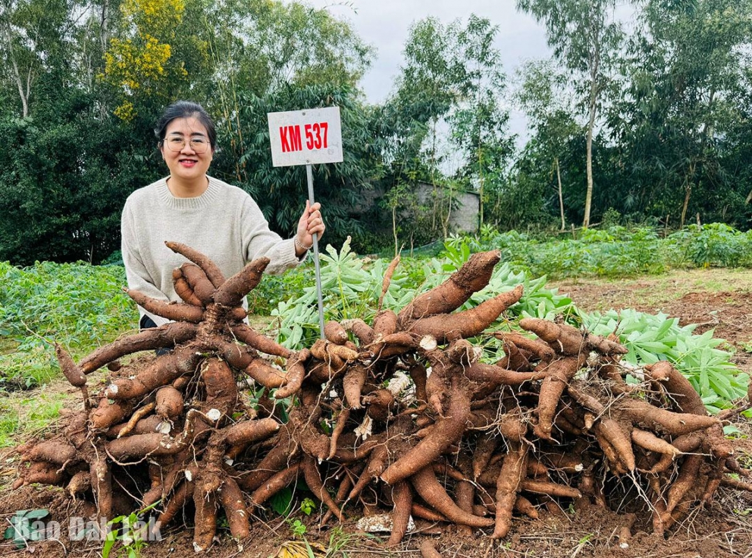 Song song đó, nhóm nghiên cứu đã tuyển chọn 2 giống sắn KM568 KM537 năng suất tinh bột cao, chống chịu sâu bệnh hại chính, thích hợp điều kiện sinh thái của tỉnh. Đồng thời xây dựng mô hình trình diễn và tập huấn chuyển giao tiến bộ kỹ thuật chọn tạo, nhân giống và quy trình canh tác sắn thích hợp cho nông hộ tại điểm nghiên cứu ở các xã phía Đông Đắk Lắk như Đồng Xuân, Sông Hinh, Sơn Hòa...