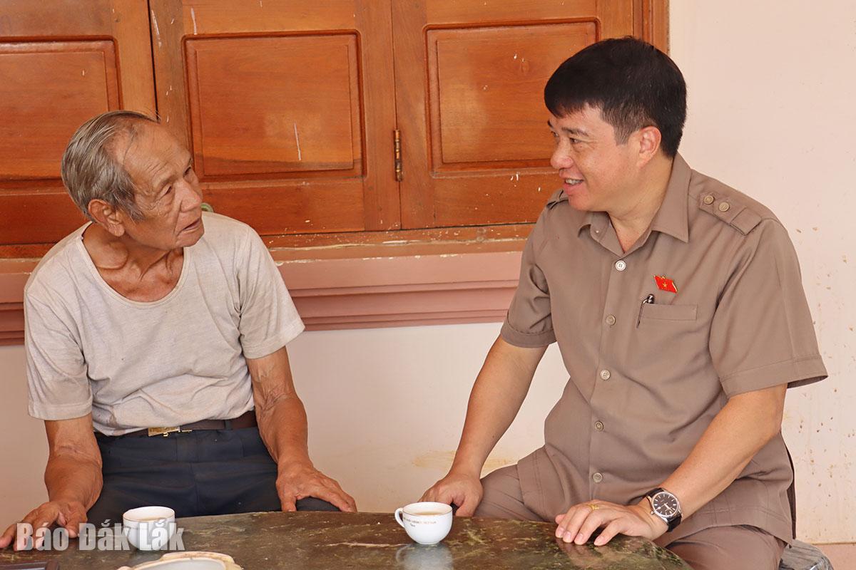 | Ông Nguyễn Kính, Trưởng Ban Dân tộc tỉnh trao đổi ý kiến với Đoàn kiểm tra. |