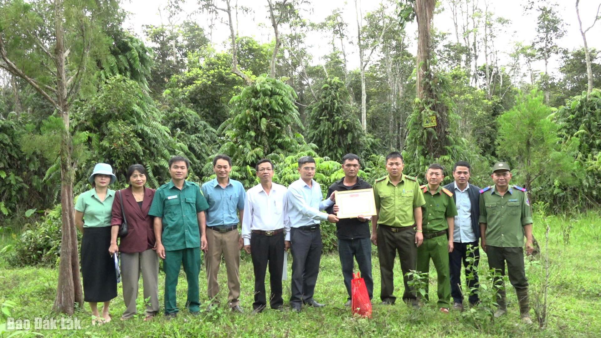 | Lãnh đạo xã Krông Búk tặng giấy khen cho các tập thể. |