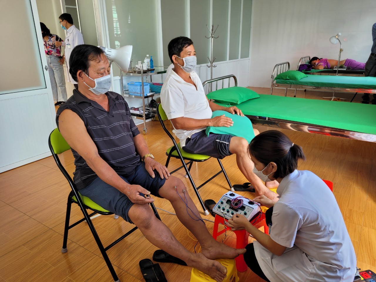 | Chị Thu hướng dẫn cách may cho các thành viên tại cơ sở. |