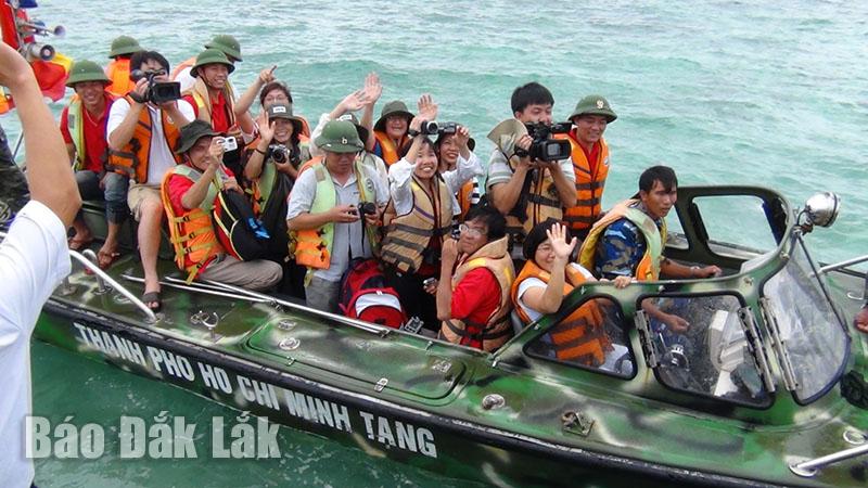 | Phóng viên Báo Đắk Lắk (bìa trái) làm video bằng điện thoại thông minh. |